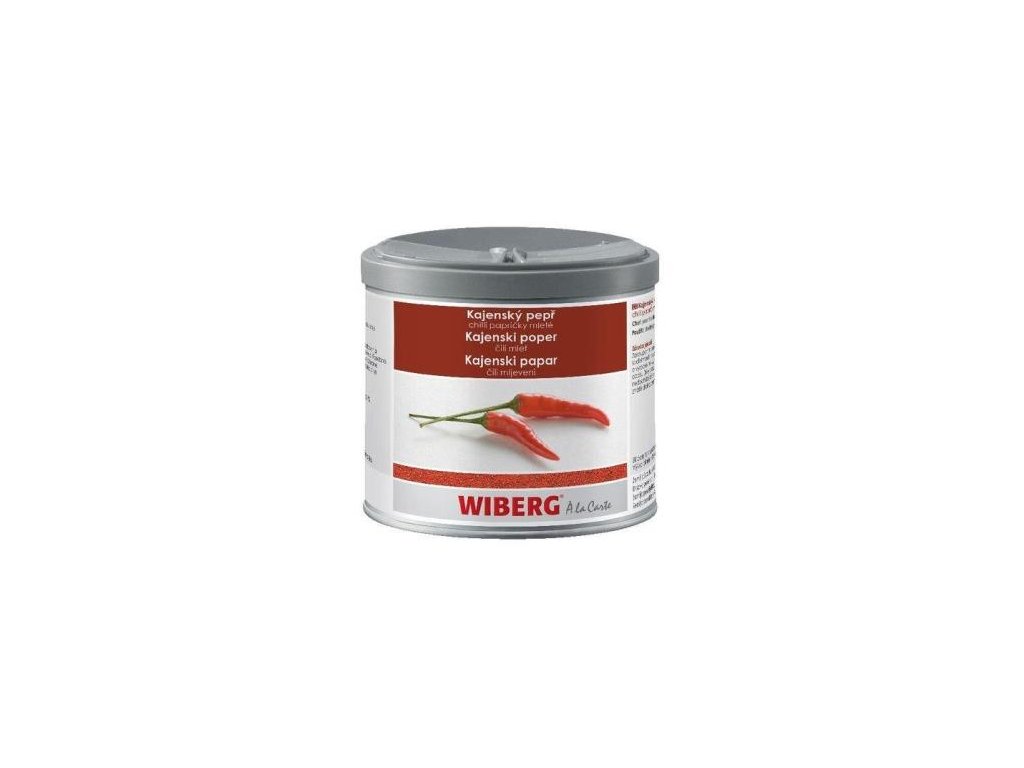 Jemně mleté chilli papričky odrůdy zvané Kajenský pepř. Odrůda se řadí mezi středně pikantní chilli a je tak výbornou volbou k dochucení různých pokrmů. Rodinný podnik Wiberg nabízí své produkty od roku 1947 především na rakouském a německém trhu. Společnost klade u svých produktů kromě prémiové kvality velký důraz i na balení. K uchování chuti, konzistence i barvy byl odborníky vyvinut „Aroma trezor“ – nádoba, která chrání sílu koření před vnějšími vlivy. Obal zaručuje optimální skladovací podmínky, a tím i dlouhou trvanlivost. Víčko se sypátkem umožňuje čistou jednoduchou manipulaci a přesné dávkování.Jednosložkový výrobek.