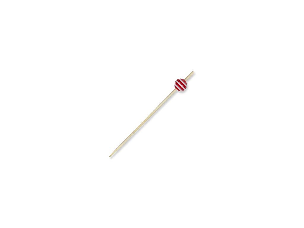 Dřevěné špejle s korálkem, červená / bílá, pruhované, 9cm, 100 ks