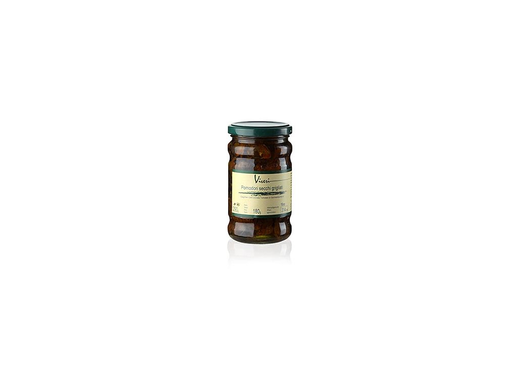 Tato na slunci sušená rajčata jsou grilovaná a naložená s kapary a olivami ve slunečnicovém oleji. Velmi delikátní! Nakládaná, grilovaná, sušená rajčata s kapary a černými olivami. Čistá hmotnost: 180 g. Složení: Sušená rajčata, slunečnicový olej, černé olivy, kapary, voda, ocet, sůl, petržel, regulátor kyselosti: kyselina citronová E330, česnek, antioxidant: kyselina askorbová E300, cukr. Po otevření uchovávejte v chladničce. Italský produkt. Odpovědní podnikatelé: Viveri GmbH, Lahnstr.30, 45478 Mühlheim, Deutschland. Prodejce v ČR: Toppotraviny.cz s.r.o., IČ:24809594, DIČ:CZ24809594, Praha 5.
